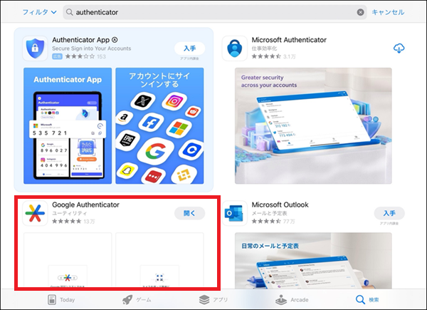 iPadの「App Store」から、Google Authenticatorアプリをインストールします。