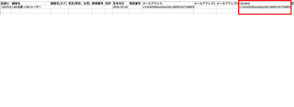 CSVを開くと、「OAuthId」という欄があります。これがLINE公式アカウントでオーディエンス配信に必要な「UID」となります。
