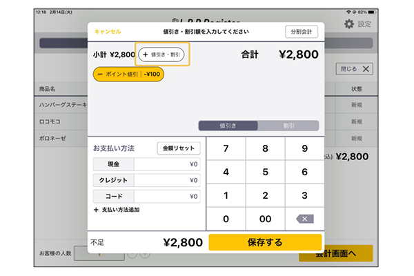会計画面での値引処理