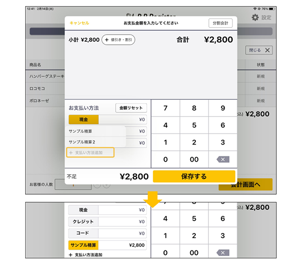 会計画面での支払方法追加