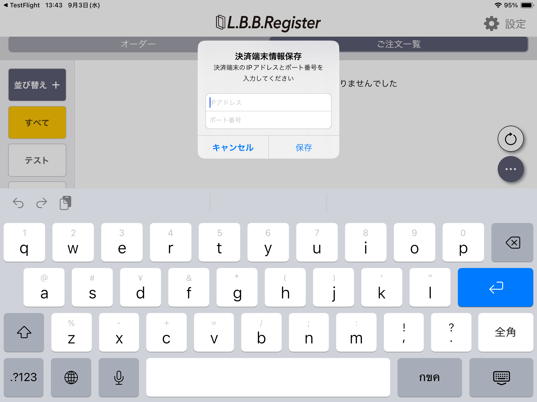 L.B.B.Registerの決済端末情報にIPアドレス、ポート番号に、それぞれ確認したIPアドレスとポート番号を設定します。