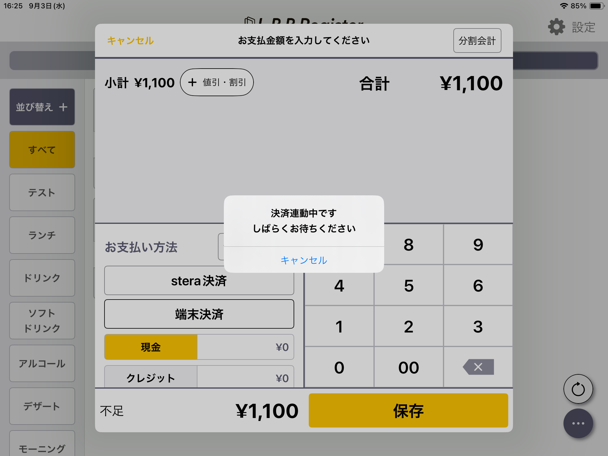 L.B.B.Registerの「会計画面」で「端末決済」をタップします。