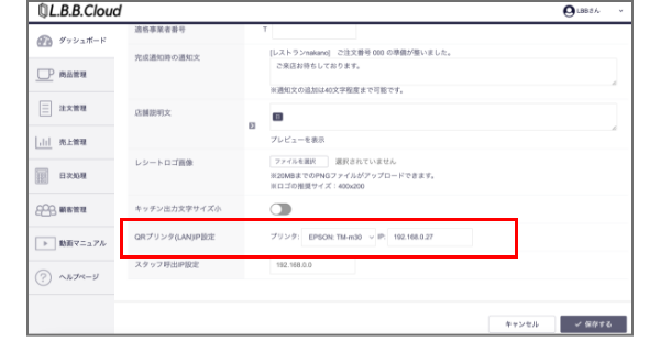 この記事は、L.B.B.Registerから注文が入ったタイミングで自動で注文伝票を印字する内容です。