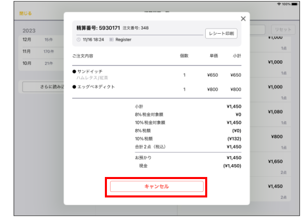 本ヘルプページの「会計完了後のキャンセル」をご確認ください。