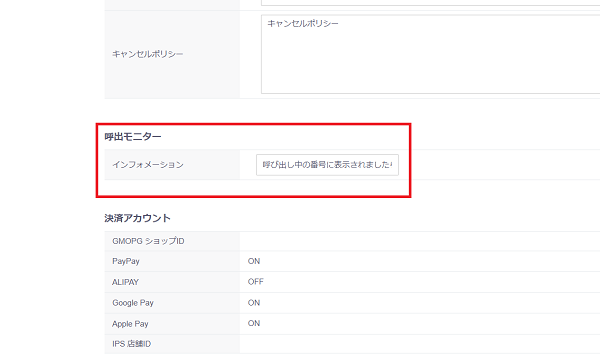・呼び出し中の注文番号の表示