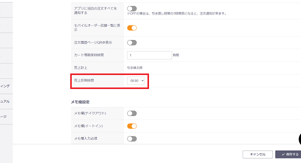 24時以降も営業している店舗では、「売上反映時間」の設定が必要になります。