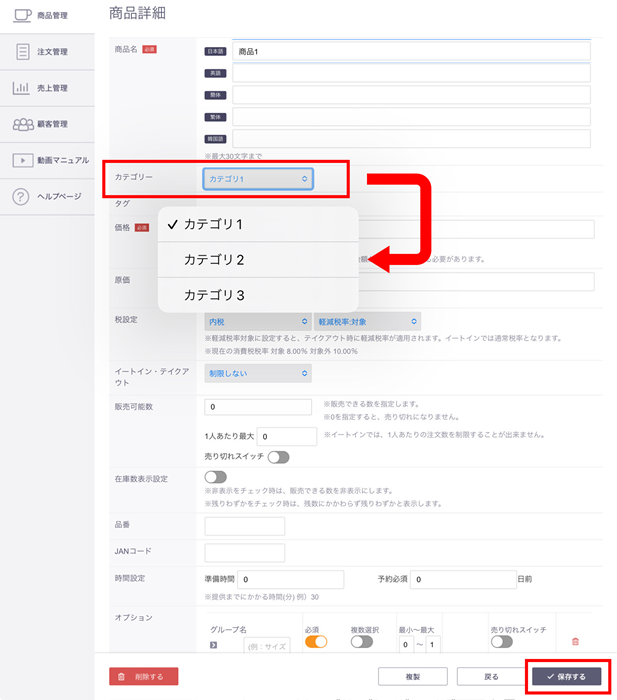 未選択の場合は、プリンタIPを設定したカテゴリーを選択し、同様に画面右下の「保存する」を押して設定します。