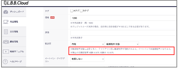 【外税】ではなく、【内税】でご登録をいただくようお願いいたします。