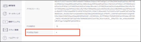 ⑤ページの一番下「POS支払方法ID」という項目に作成した支払方法IDを入力し、「保存する」を押してください。